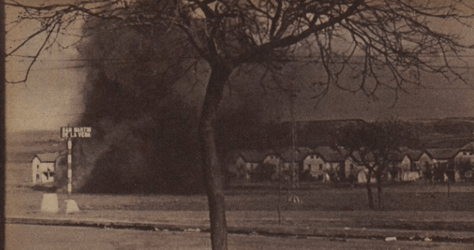 En esta fotografía se aprecia la explosión de un artefacto, posiblemente de artillería, en las inmediaciones de San Martín de la Vega, una localidad muy importante desde el punto de vista estratégico.