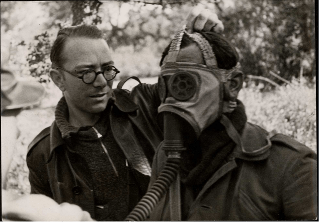 Sinceramente no sabemos si durante la Batalla del Jarama se utilizaron gases por parte de los dos Ejércitos. Lo que sí sabemos es que tanto republicanos como nacionales intentaban prepararse para este tipo de contingencias. En la fotografía podemos ver a un miembro del Batallón Antigás mostrando a un grupo de soldados de la República como funciona y como se tendría que utilizar una máscara antigás.