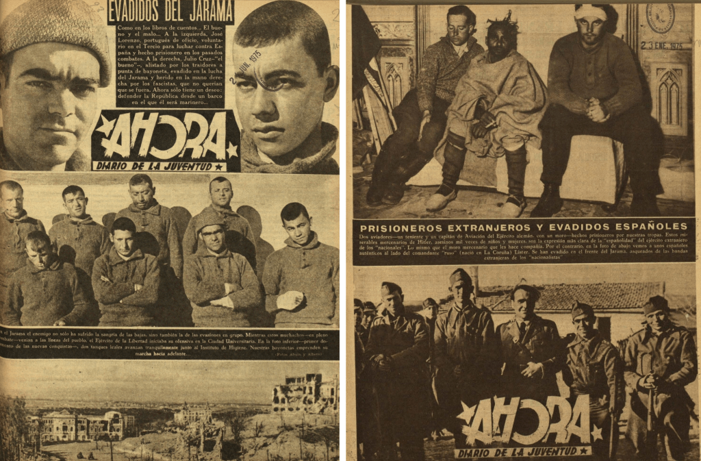 Las deserciones durante la Batalla del Jarama fue una constante. No solo se produjeron durante los intensos combates de febrero de 1937, sino que una vez estabilizado el frente, numerosos soldados de uno y otro bando desertaron. Nosotros hemos recogido estas dos portadas de la prensa republicana porque hablan, a diferencia de los diarios nacionales, directamente de los evadidos de una zona y otra mostrando claramente sus imágenes.