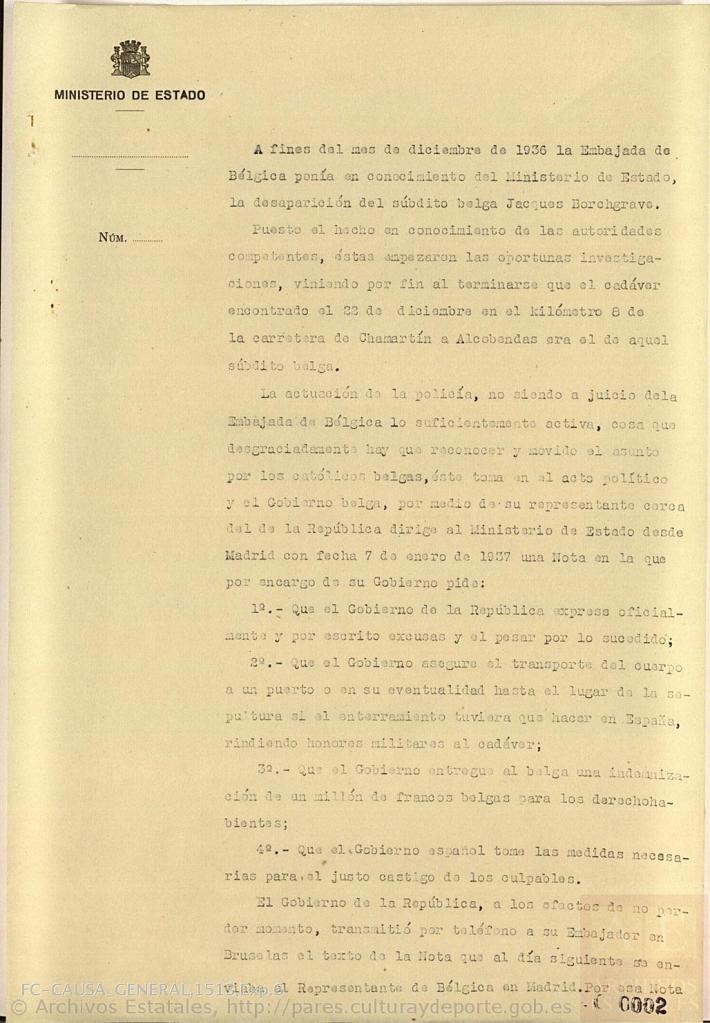 3) El Gobierno de la República trató de hacer creer a la opinión pública que el asesinato había corrido a cargo de las Brigadas Internacionales que habían tomado la justicia por su mano con Borchgrave al saber que estaba intentando convencer a brigadistas para que desertaran. Esto según los archivos belgas no tiene fundamento.
