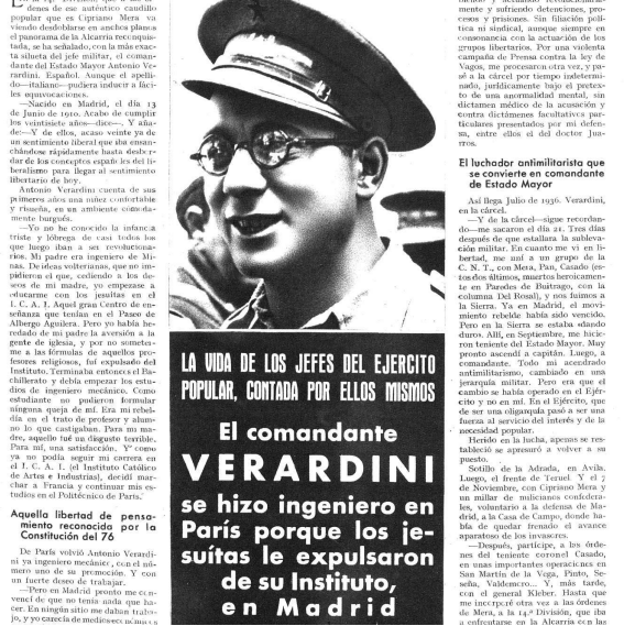 Pese a tener apellido italiano, Verardini había nacido en Madrid en 1910 por lo que al estallar la guerra tenía 26 años. Hijo de un ingeniero de minas , se educó en los Jesuitas de la calle Alberto Aguilera hasta que se marchó a Francia para cursar, también él, los estudios de ingeniería mecánica. Fue número uno de su promoción. En París empezó a simpatizar con el movimiento libertario. Al regresar a España no pudo encontrar trabajo en la capital, por lo que decidió trasladarse hasta Ceuta para hacer negocios. Allí creó una empresa de construcciones, pero no le fueron bien las cosas desde el punto de vista comercial debido a sus enfrentamientos con las jerarquías militares.