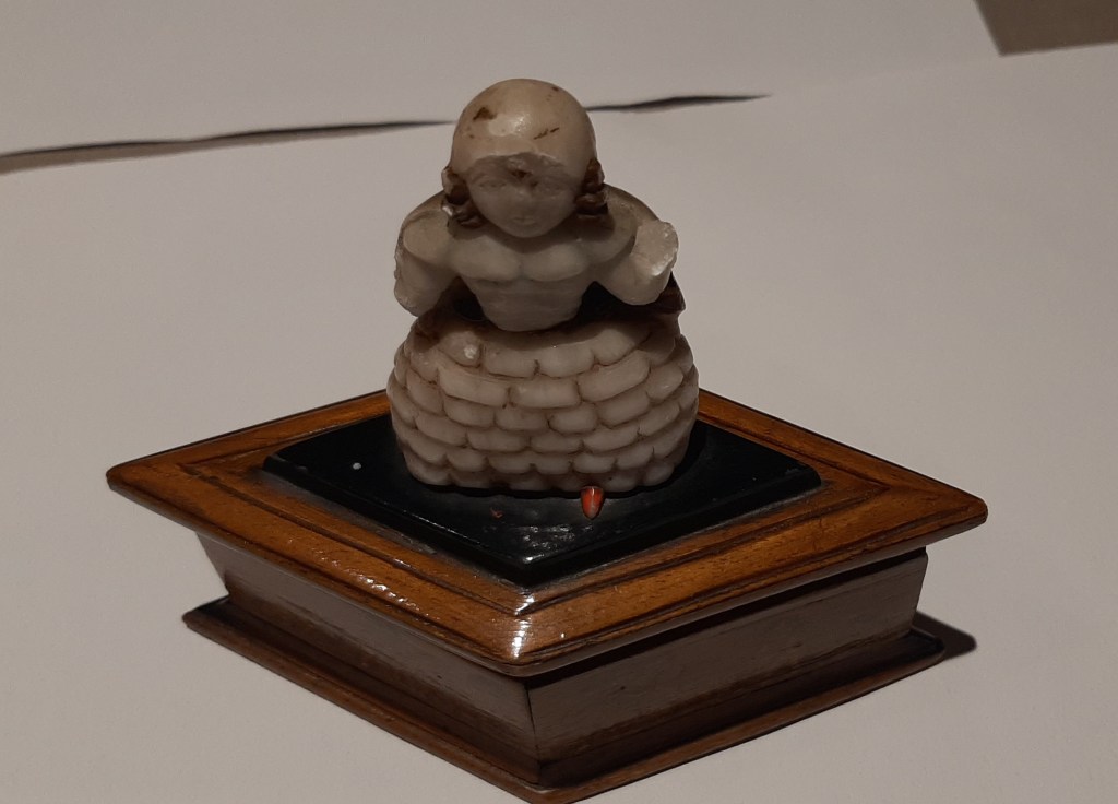 Como puede apreciar el lector en los primeros párrafos del artículo, el retrato, que tiene un valor sentimental incalculable, aparece firmado por Buero Vallejo en la parte inferior derecha, donde figura así: BVERO, XL. El autor teatral se lo entregó a Eugenia unos días después del fusilamiento de su novio y ella lo guardó durante décadas escondido entre libros. También conservaba con sumo cuidado un pequeño joyero que Valentí le hizo durante su cautiverio, tallado en hueso, que Elena tuvo la amabilidad de enseñarnos en nuestro encuentro.