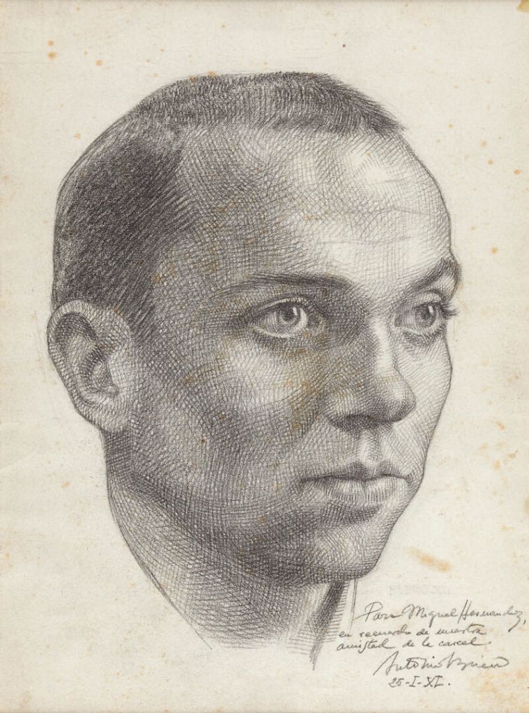 En la cárcel de Conde de Toreno, Fernando Valentí coincidió con personajes tan ilustres como los escritores Miguel Hernández y Antonio Buero Vallejo, con los que intimó durante todo su cautiverio. La relación fue especialmente estrecha con Buero Vallejo, que además de un ilustre escritor era un grandísimo dibujante, y le hizo un retrato a Fernando que ha permanecido oculto hasta hoy. Gracias a Elena hemos tenido acceso a este impresionante dibujo que guardó Eugenia durante muchos años y que, tras su fallecimiento, conservaron con especial cuidado sus descendientes. El retrato es muy parecido al que Buero Vallejo le hizo a Miguel Hernández en esta misma prisión y que ha dado la vuelta al mundo, pues es la última imagen que existe del poeta antes de su muerte en 1942.