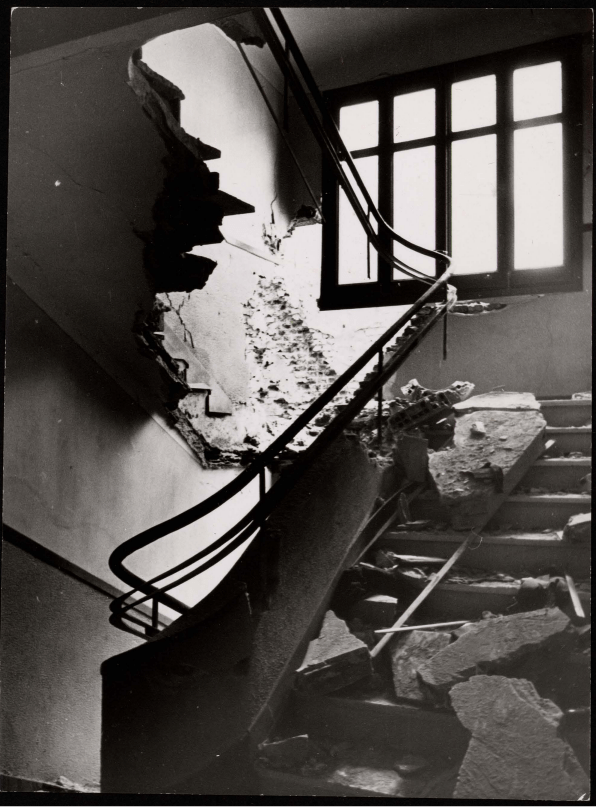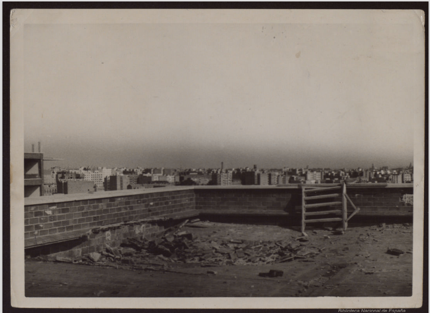 A través de los fondos de la BNE hemos conseguido rescatar varias imágenes de muy buena calidad de cómo quedó el Hospital Clínico una vez terminada la Guerra Civil. El lector se puede hacer a la idea de lo complicado que tuvo que ser para los soldados que allí estuvieron permanecer entre las ruinas del hospital durante este tiempo, ya que muchas zonas sufrían riesgos de serio derrumbe. Pese a todo, aseguraron la posición e incluso se estableció en la azotea un observatorio de artillería y aviación, mandado por un teniente del Tercio, que tuvo cierta importancia militar. Desde este observatorio se veía a la perfección los principales edificios de Madrid, las calles adyacentes al hospital y por supuesto las posiciones republicanas en Ciudad Universitaria. La propaganda franquista organizó hasta allí varias visitas guiadas con el fin de demostrar que el Ejército sublevado tenía pie y medio en la capital.