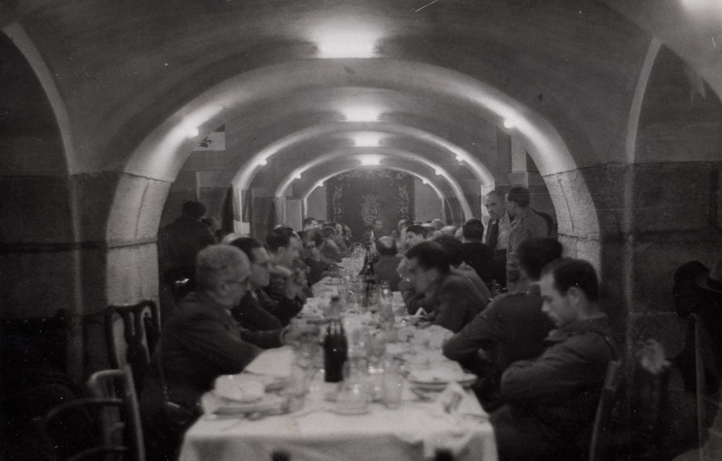 Varias imágenes tomadas en aquellos meses de noviembre y diciembre de 1936 muestran en el ministerio, no solo al general, sino a otros personajes destacados de la Junta de Defensa de Madrid como Carrillo o Serrano Poncela. En el episodio de nuestro podcast también hablamos de la presencia de Azaña en Hacienda en el año 1937. Miaja le invitó junto a otros miembros del Gobierno a un banquete en los sótanos al que acudieron altos oficiales del Ejército como se puede apreciar en esta imagen.